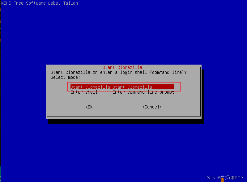 《3》选择【Start_Clonezilla Start Clonezilla】(即启动再生龙工具)后按下Enter键,如下图所示: