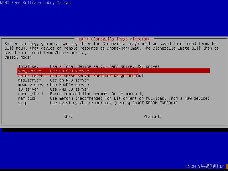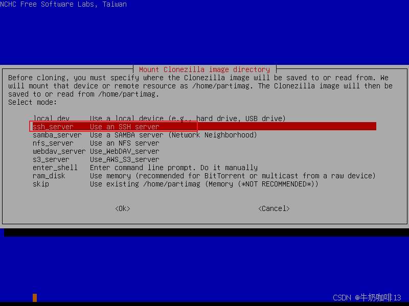 《5》选择【ssh_server Use an SSH server】(即:使用SSH服务器目录)后按下Enter键,如下图所示: