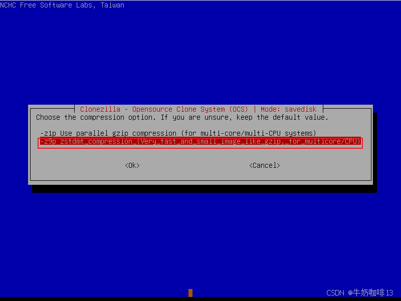 《12》选择默认的【-z9p zstdmt_compression_(Very_fast_andsmall_image_like_gzip,_for_muticore/CPU)】后按下Enter键,如下图所示: