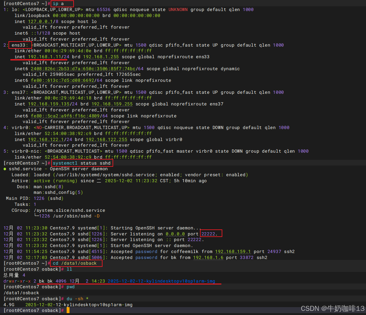 如:我这里获取到的用于备份系统的服务器的IP是【192.168.1.11】ssh端口是【22222】备份路径是【/data1/osback】备份用户是【bk】。