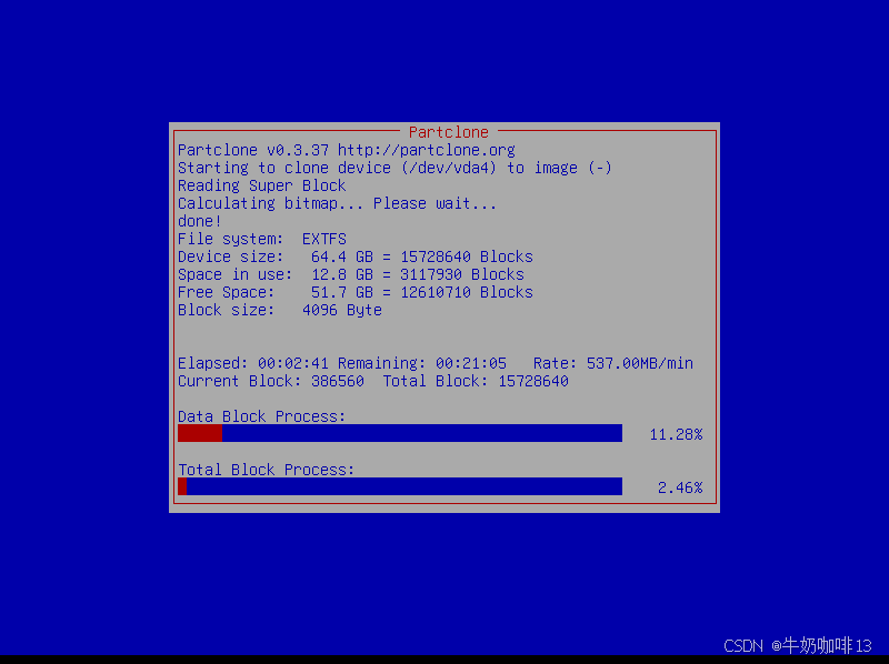 《17》请耐心等待系统备份完成,大概10多分钟,如下图所示: