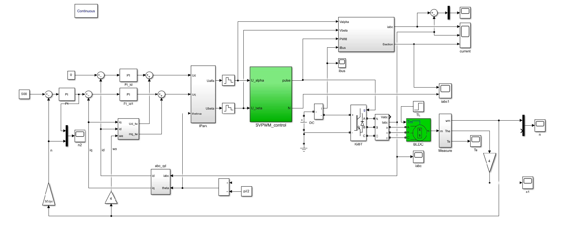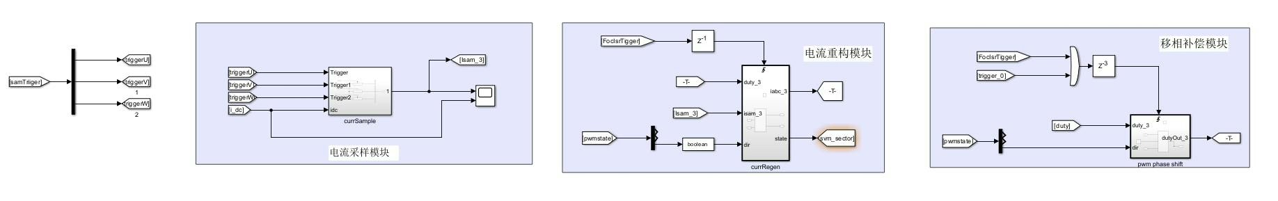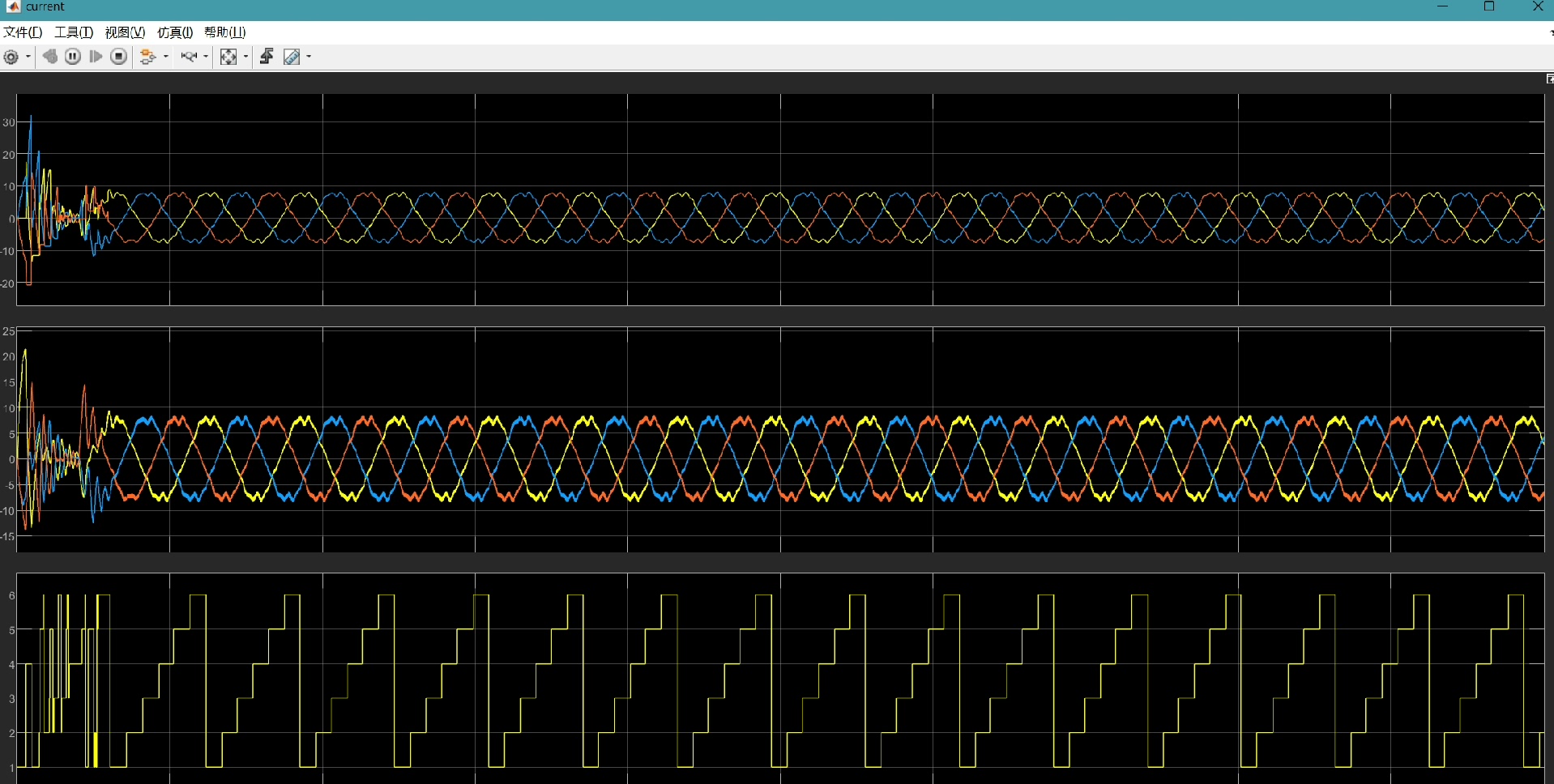为了验证这个相电流重构策略的有效性,我们使用MATLAB/Simulink搭建仿真模型。模型中包含永磁同步电机模块、逆变器模块、单电阻采样模块以及电流重构模块。