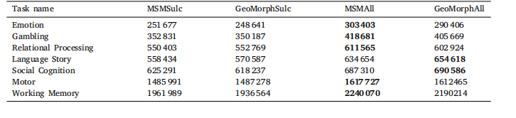 Table 3Cluster mass estimates of the aligned HCP tfMRI data using proposed methods.