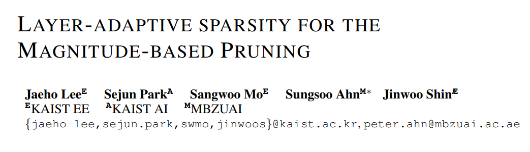 传统幅度剪枝(MP)通常依赖预设的层间稀疏度(如均匀剪枝或启发式规则),而LAMP通过一种归一化的权重重要性评分,将层间MP扩展为全局剪枝。其评分公式为:
