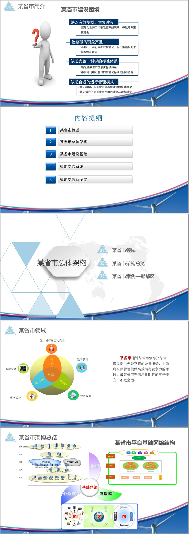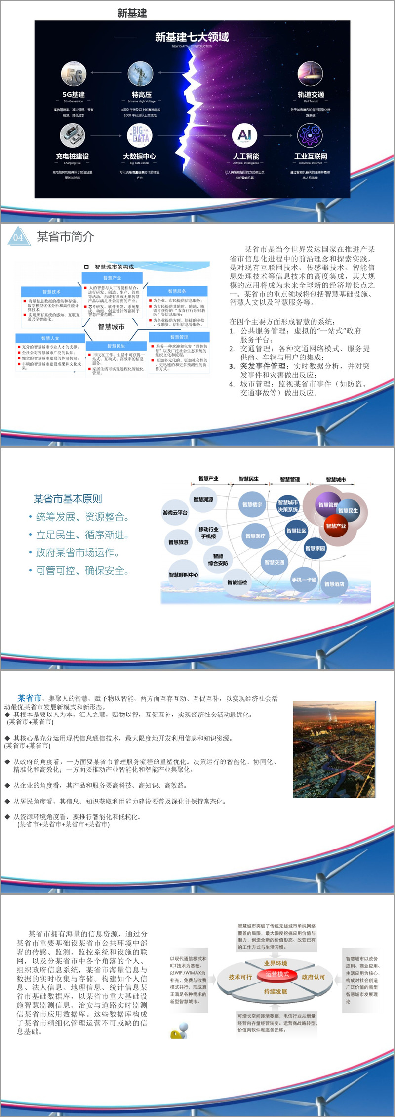 在基础架构方面,某省市依托"光网城市"和"无线城市"建设,通过光纤到户(FTTH)和高速无线网络(如WIFI)覆盖,支撑百兆到户的带宽能力,支持IPTV、视频监控、远程会议等大数据业务。这些基础设施与"新基建"政策相结合,为城市信息化提供了坚实基础。