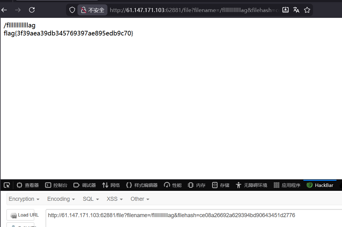 - 并且发现url中传输了两个参数,一个是filename,另一个是filehash, 改下filename 试试 /fllllllllllllag