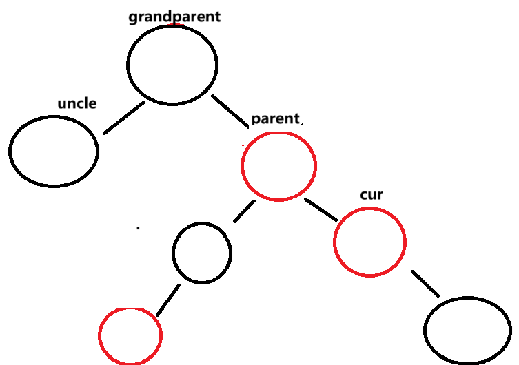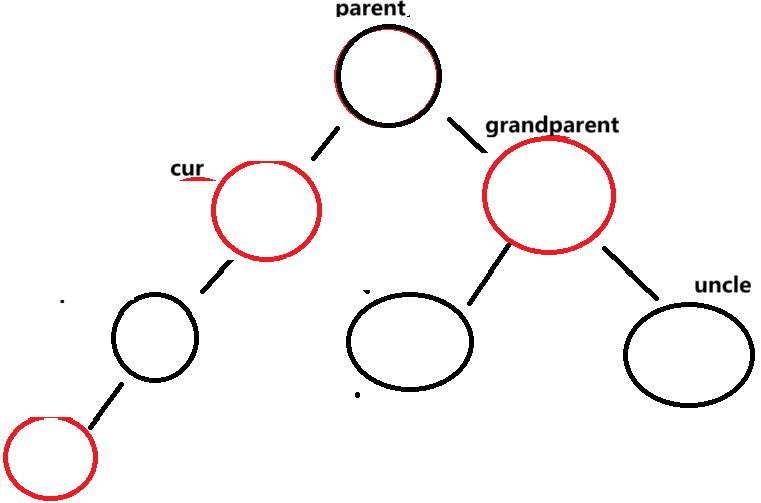 这时就变成了cur == parent.left这种情况,按照上一种方式旋转grandparent即可