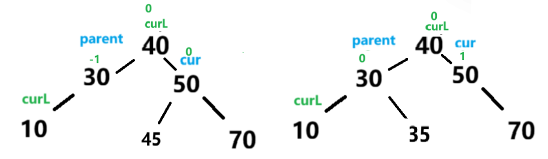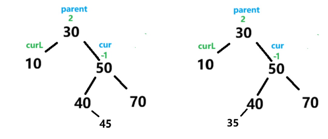 parent.bf == -2 && cur.bf ==-1