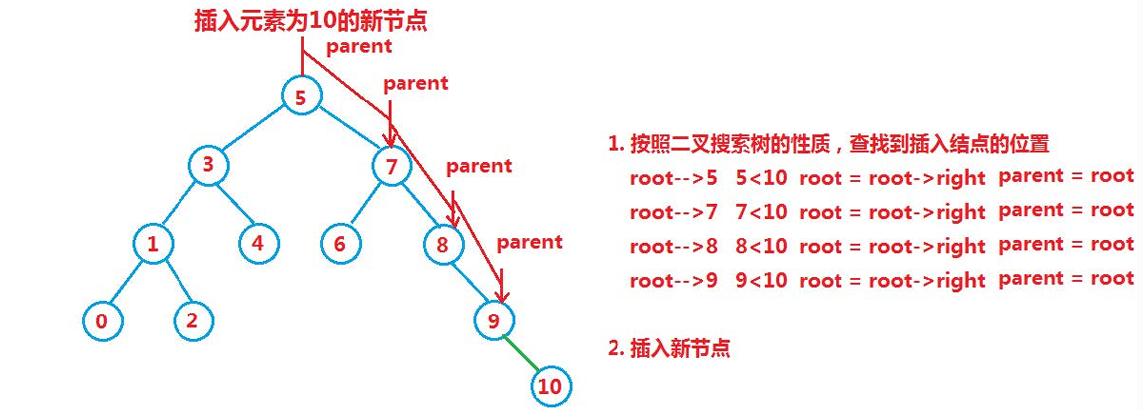 如果不是空树,则按照查找逻辑确定插入位置
