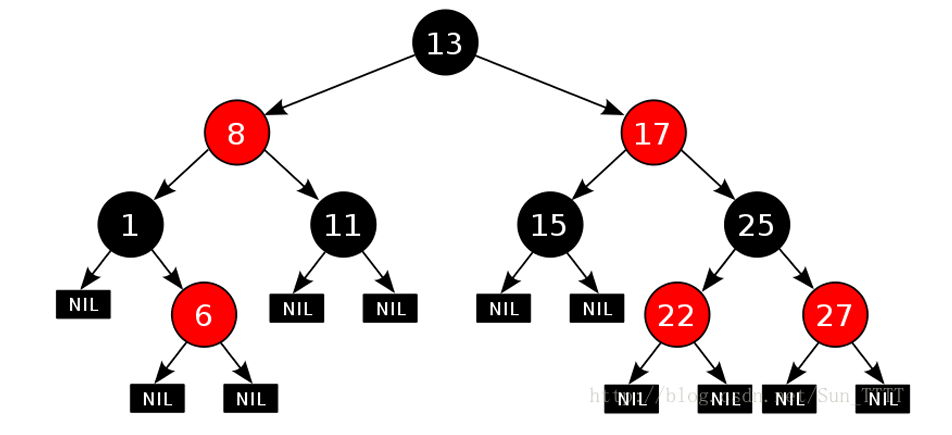 根节点是黑色的 ,黑色 的子节点可以是黑色 ,也可以是红色 。红色 的子节点必须是黑色 。对于每个节点,从该节点到其所有后代 的简单路径上,黑色节点数是相等的 ,且最长路径最多 是最短路径的两倍。每个是空节点 的叶节点(NIL) 都是黑色的