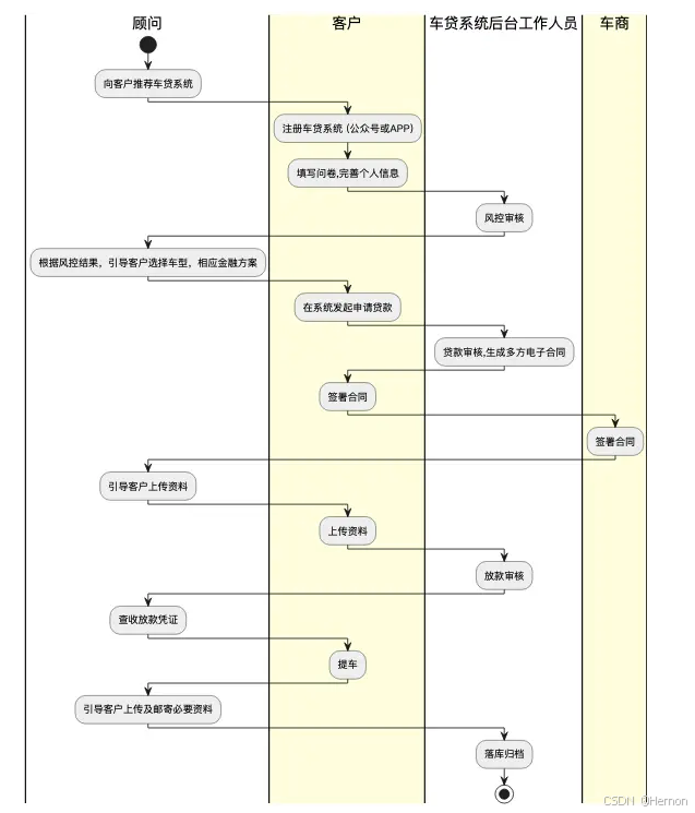 - 放款 :平台信用担保,向 4S 店发送放款凭证 ,启动提车流程。
