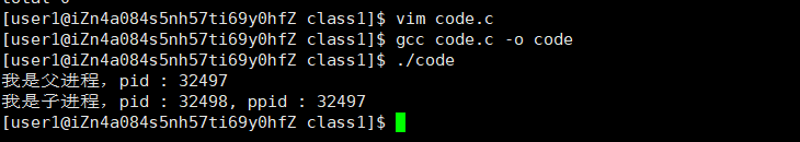 printf("我是子进程,pid : %d, ppid : %d\n", getpid(), getppid());