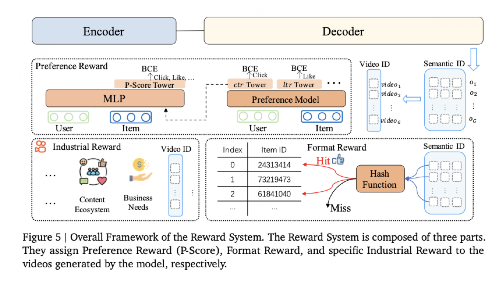 - 作为 RL 的偏好奖励,既解决了传统 RL 奖励 "单一化、无差别" 的缺陷,又与 OneRec 的端到端生成架构、多模态表征完美衔接,最终推动模型突破传统推荐的性能天花板。