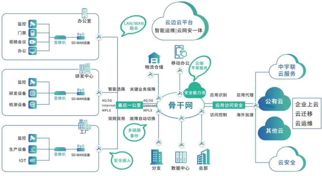 云边云科技提供的SD-WAN与SASE(安全访问服务边缘)解决方案,正致力于解决上述企业网络痛点。其方案核心特点包括: