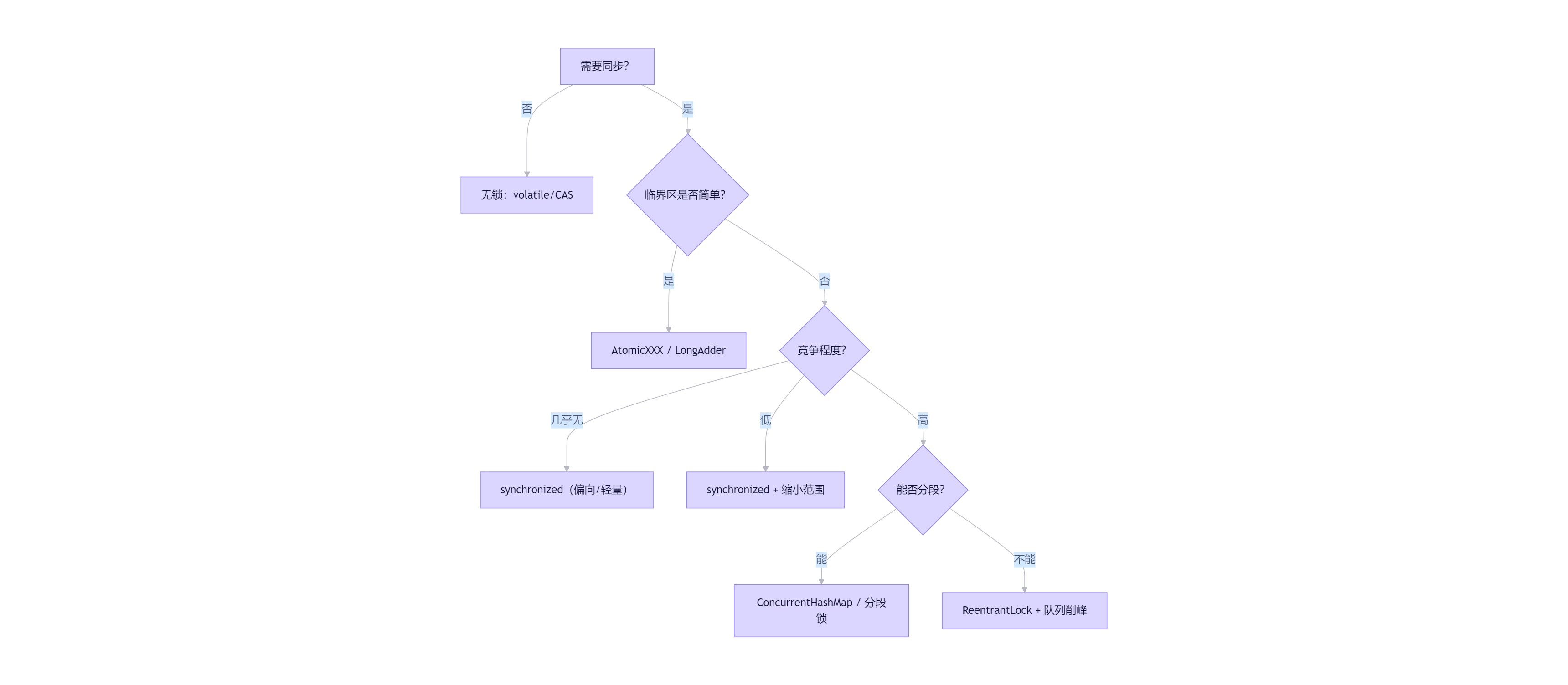 | 重量级锁 | 强一致性保障 | 上下文切换开销大 | 高竞争或长临界区 |