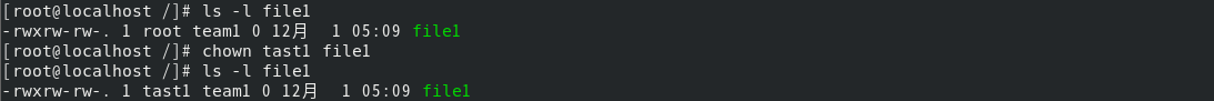 chown tast1 file1 # 将file1文件夹的拥有者更改为tast1