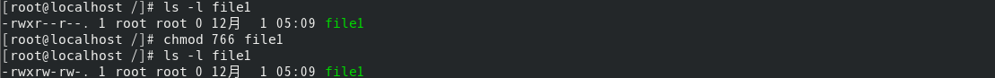 chmod 766 file1 # 将file1文件夹的用户权限修改为7,将用户组的权限修改为6,将其他用户的权限修改为6。
