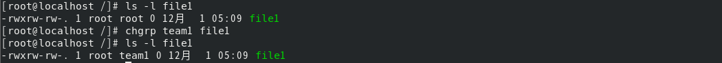 chgrp team1 file1 # 将文件file1的归属组设置为team1