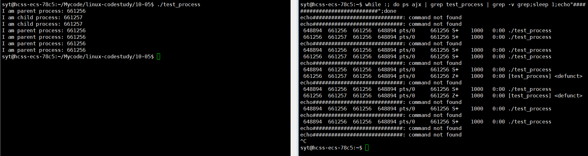 // // while :; do ps ajx | grep test_process | grep -v grep;sleep 1;echo"#############################";done