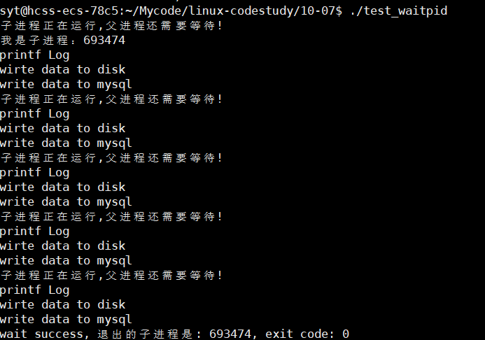 如果父进程wait子进程 ,但是子进程就是没有退出 ,那么父进程会阻塞在wait函数中。