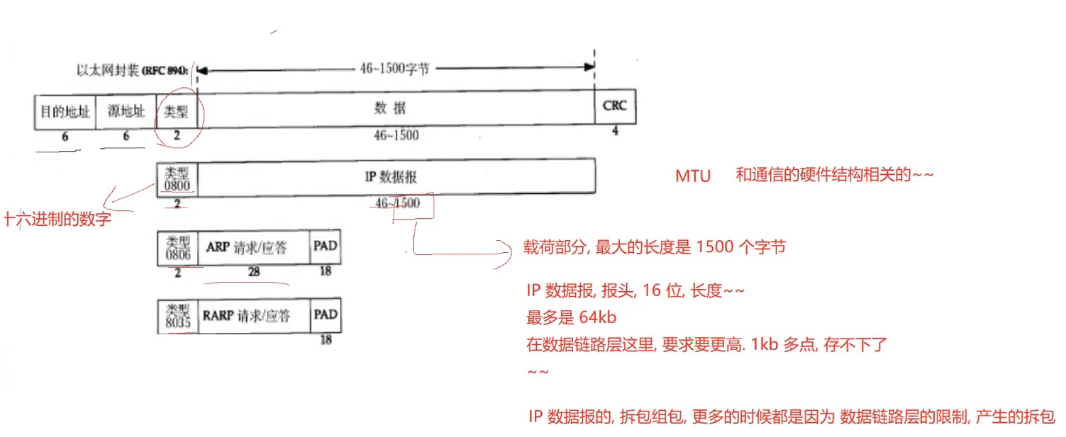 目的地址、源地址:此处的地址 不是IP地址 而是mac地址(物理地址)