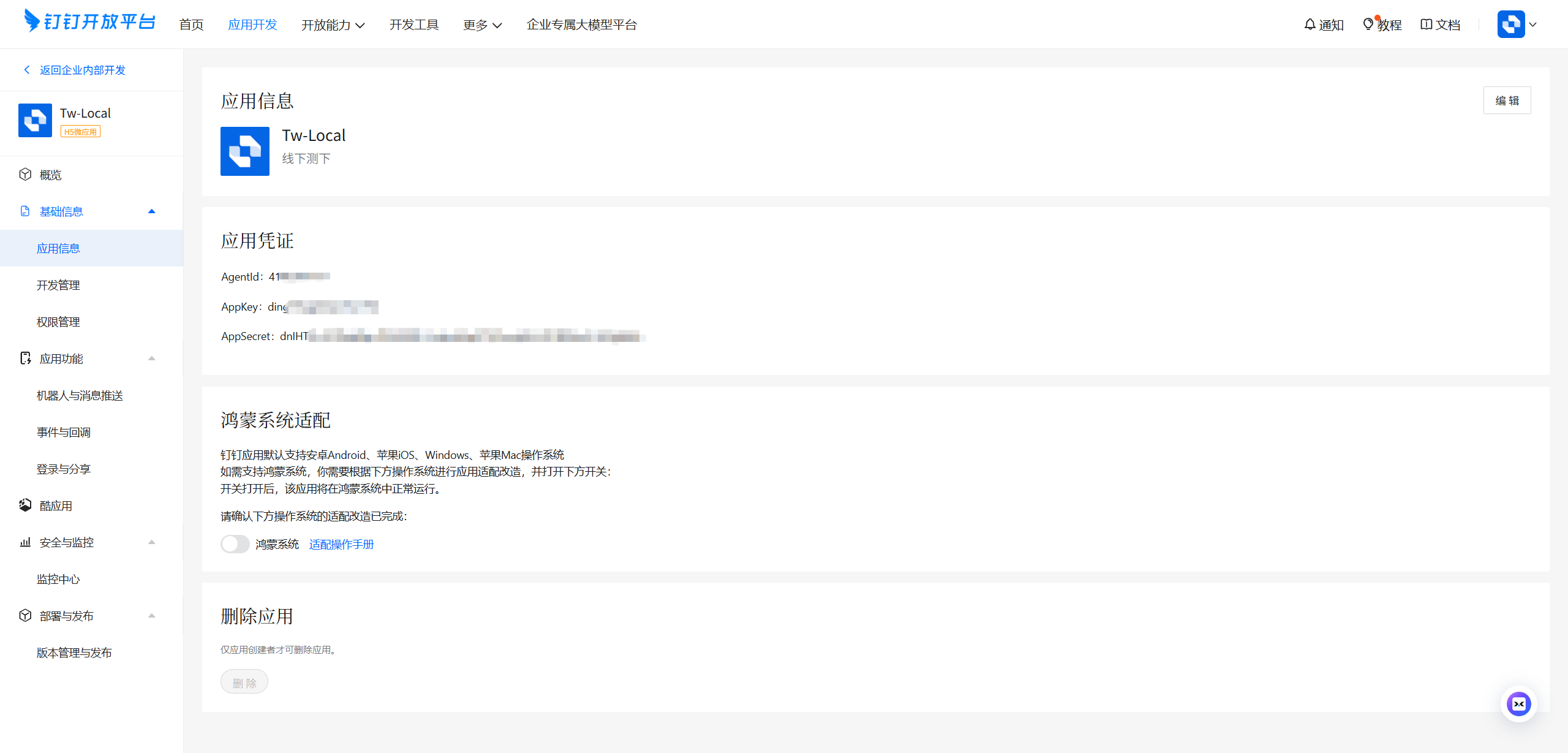 需要填写钉钉应用凭证,用于验证调用方身份并授权操作权限的密钥,主要包括以下类型:
