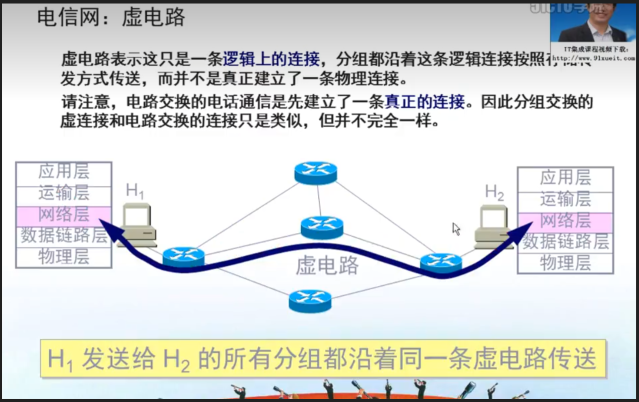 网络管理员配置好一条链路之后就可以进行传输了。如果链路断了,传输就做不了。(链路固定)