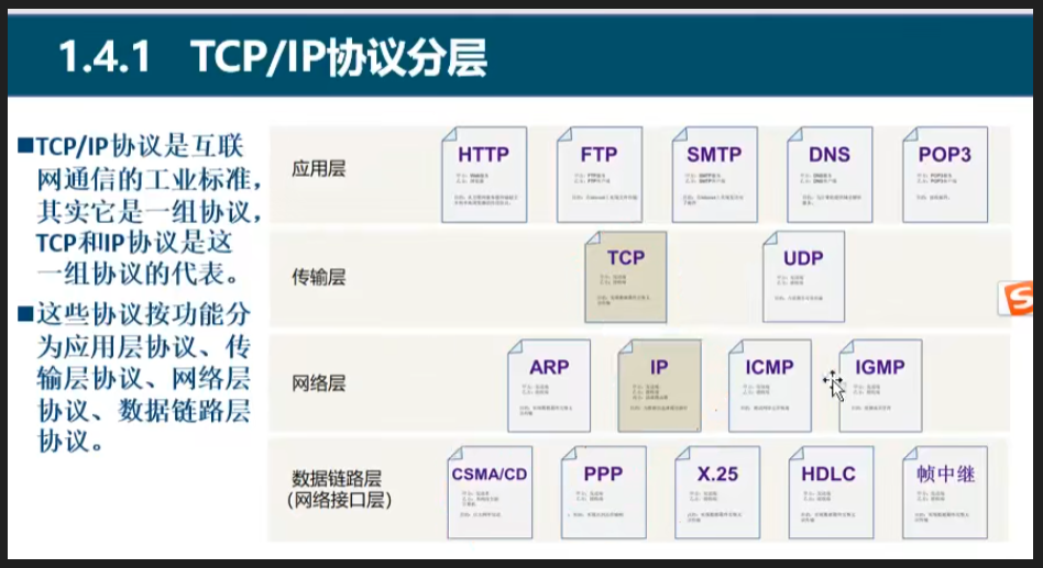 ARP协议是底层,IP协议依赖于ARP协议,ICMP和IGMP协议依赖于IP协议。
