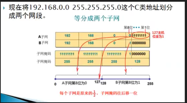 C类地址:前24位是网络部分,后面8位是主机部分,一个网段的主机数量是256