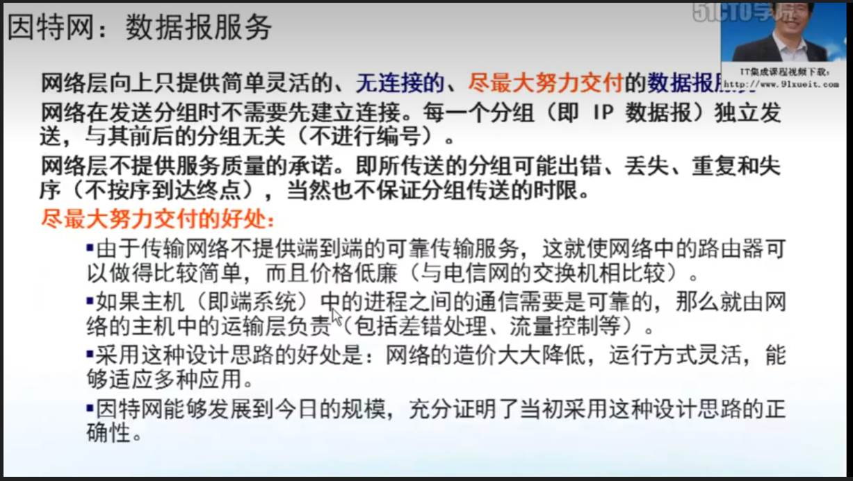 网络层负责为数据包选择转发路径,不负责可靠传输也不负责按顺序到达。