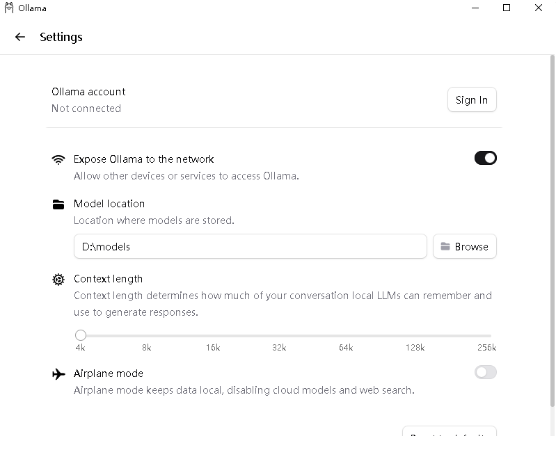 到官网下载欧拉玛一个大模型管理工具之后就要配置他的一个大模型的一个安装目录,当然也可以使用默认的