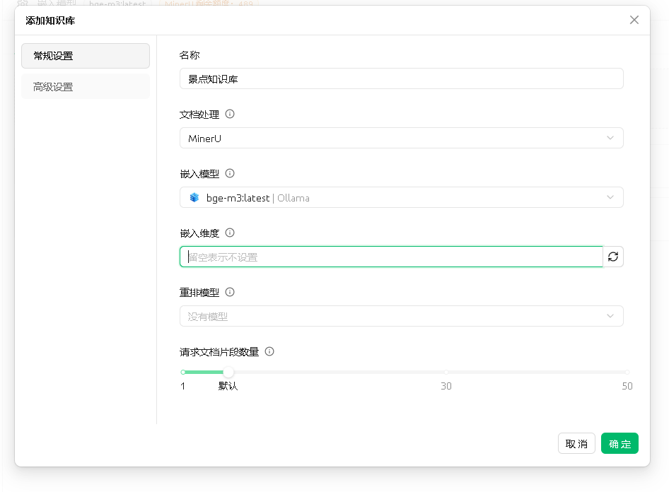 接下来自己输入命令也好,或者是在下拉选择也好,把模型库下载下来之后的就是建立知识库了