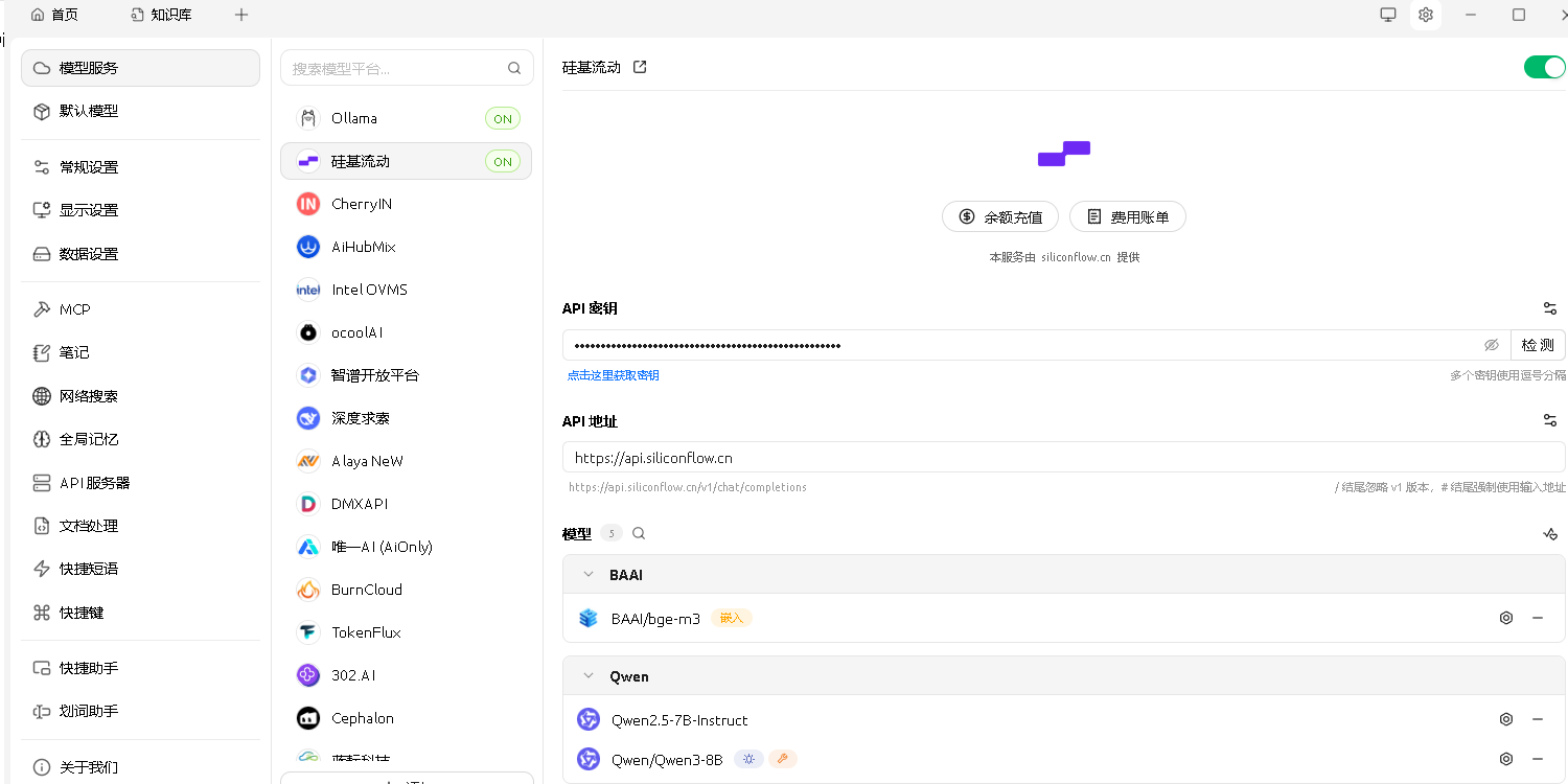 这次我们选择使用硅基流动的API的方式来导入模型服务,这样的话你就可以使用工具来进行一个访问,当然其他的也可以,比如现在很流行的deepseek,通义千问,豆包等等。