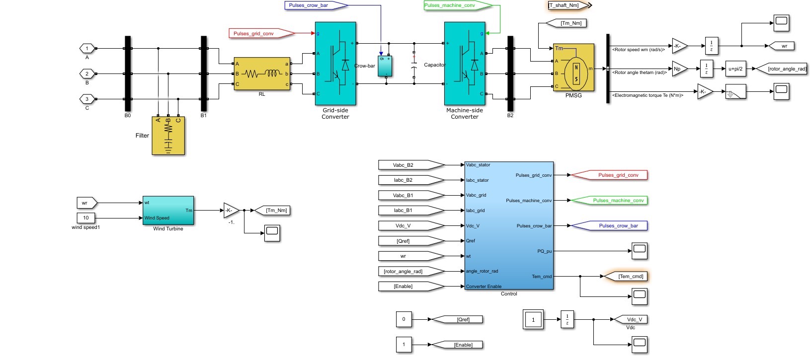 永磁直驱风机虚拟惯量控制,VSG虚拟同步机控制转子动能和直流母线参与调频,并网特性,低电压穿越故障~