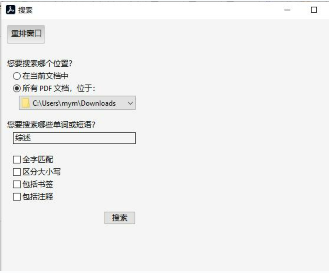 把这些需要搜索的PDF放在同一个文件夹里面,任意打开一个PDF,编辑------高级搜索------所有PDF位于。就可以搜索这个文件夹下所有的PDF内容