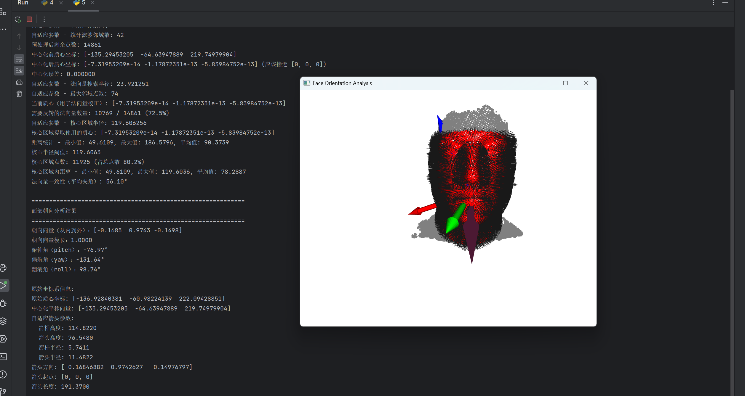 完成了通过点云处理技术自动计算人脸面部朝向的简单算法。
