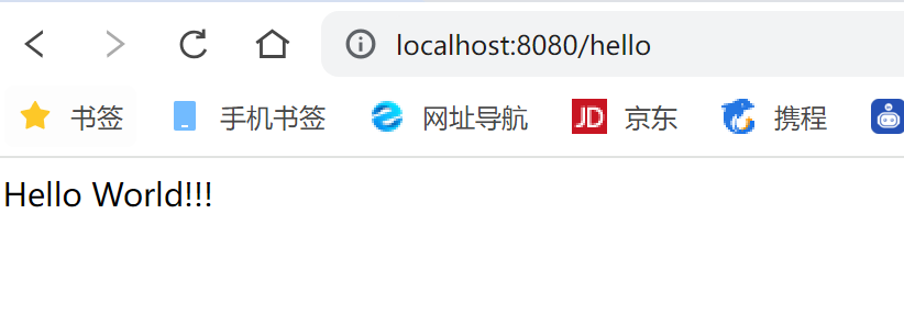 - 测试:运行主程序,浏览器访问http://localhost:8080/hello即可。如图: