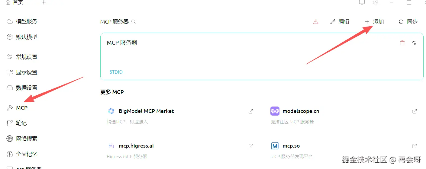 在写代码前,我们先用 GUI 工具直观感受一下 MCP 的威力。CherryStudio是目前对 MCP 支持最好的客户端之一。