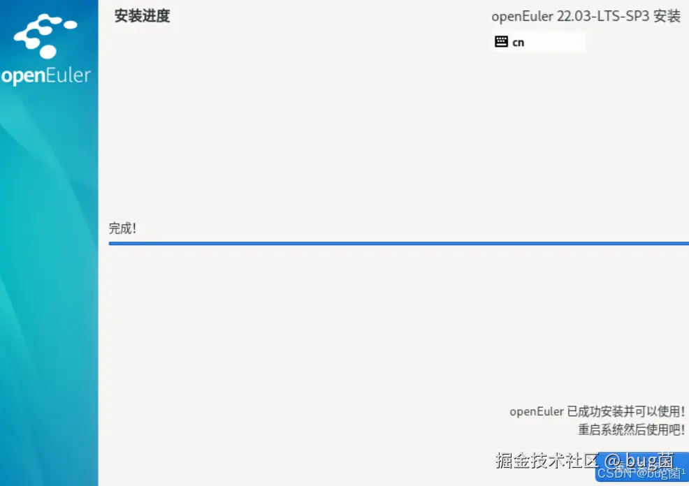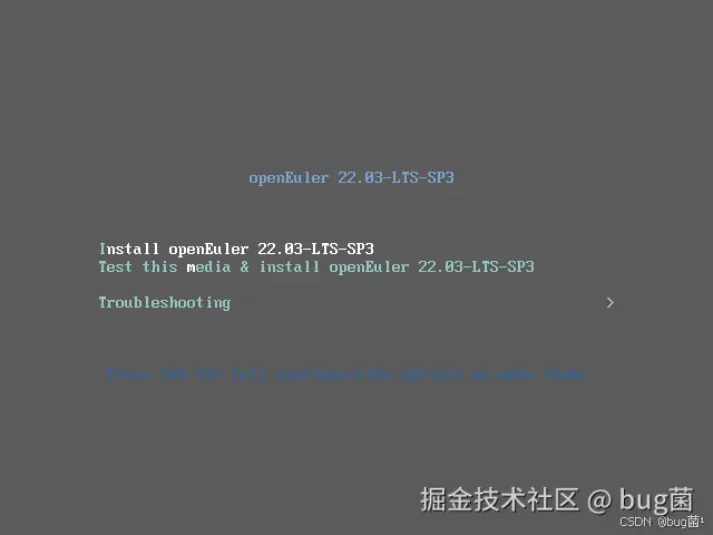 按键盘的上键,选择到第一个,Install openEuler 22.03-LTS-SP3,按回车键。