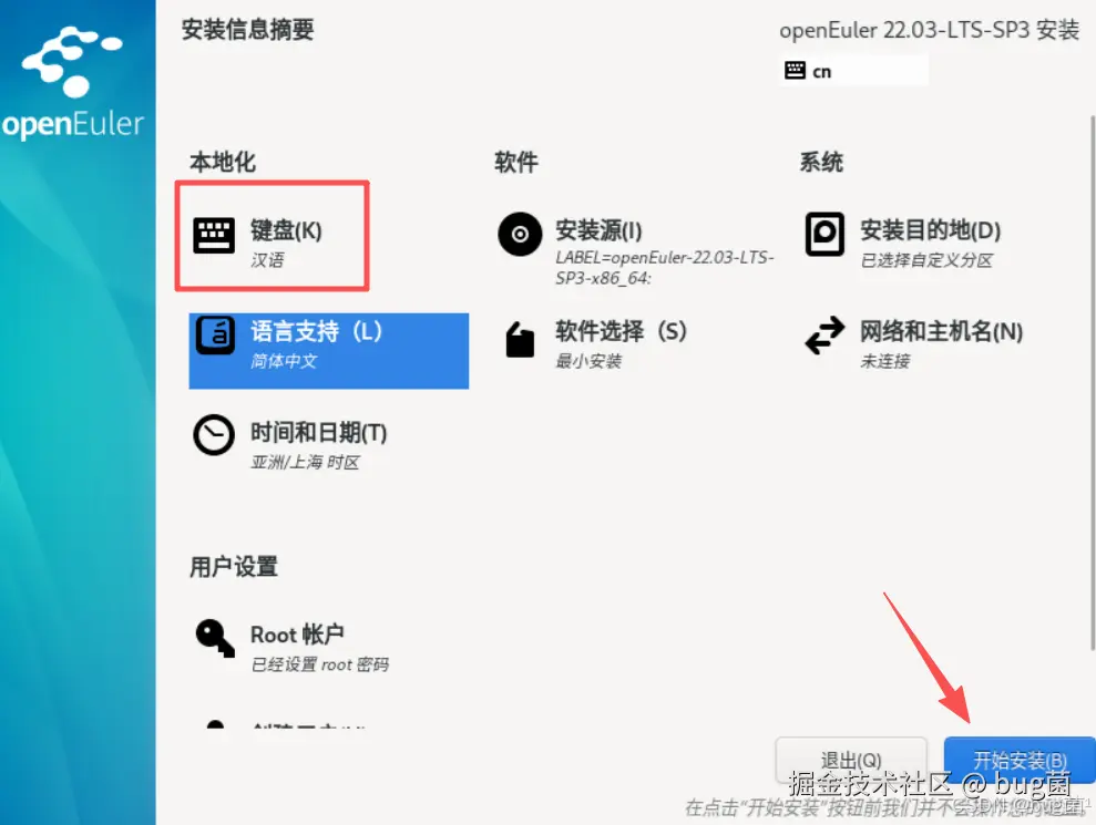 一段旅程的开始,始于足下。对于一个操作系统而言,安装过程就是它给我的"第一印象"。我从 openEuler 官方社区下载了 openEuler-22.03-LTS-SP3-x86_64-dvd.iso 镜像,并准备了一台虚拟机进行安装。iso下载地址,感兴趣的朋友赶紧按照体验一波。