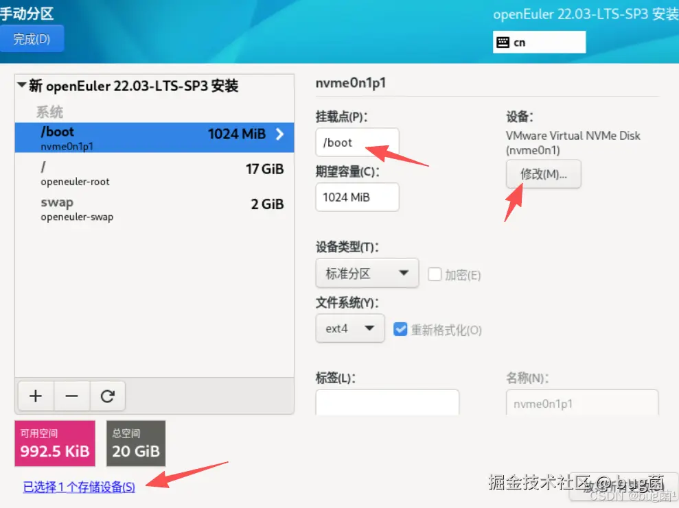 选择LVM 自动创建分区,生产环境推荐使用LVM磁盘分区模式
