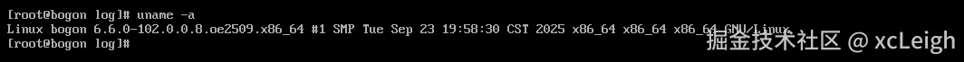 输出中会明确显示内核版本号(如 5.10.0-xxx.openeuler20.03.x86_64),内核版本直接影响部分安全特性的支持情况(如 SELinux 高级功能、容器隔离能力)。