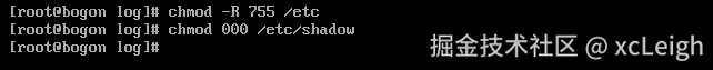 chmod -R 755 /etc中,-R表示递归应用权限(包括子目录和文件),755表示所有者(root)有读/写/执行权限,其他用户仅有读/执行权限。chmod 000 /etc/shadow表示所有用户均无读/写/执行权限,/etc/shadow存储用户加密密码,严格限制访问可防止密码泄露。