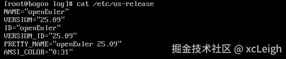 输出将包含 NAME="openEuler"、VERSION="xxx"(具体版本号)等字段,确认当前系统为 openEuler 系统,避免因操作系统不匹配导致后续操作失败。
