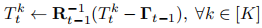 分别为 t-1 时刻的旋转矩阵和平移矩阵。