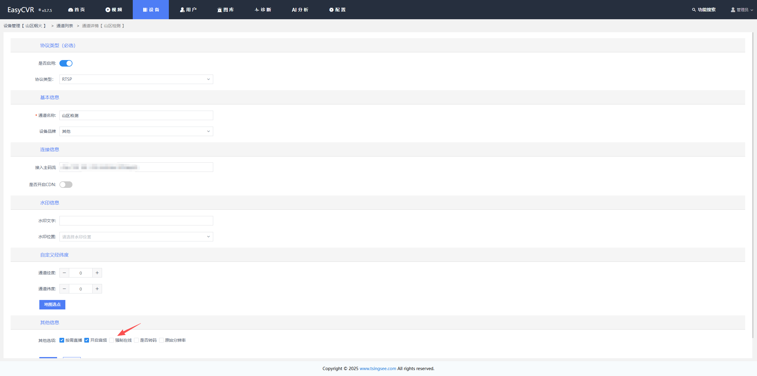 1)调整通道配置:在EasyCVR平台,找到该故障通道的配置项。