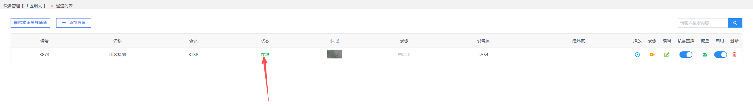 3)状态同步:关闭"强制在线"后,平台会根据实际的网络探测结果更新通道状态。此时,通道状态应能正确反映设备的实际在线/离线情况。