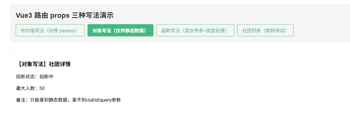 <h2>Vue3 路由 props 三种写法演示</h2>