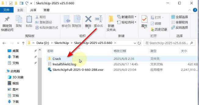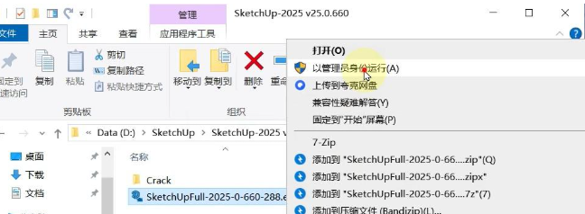 1.把上面用百度网盘保存、下载的SketchUp 2025安装包解压打开