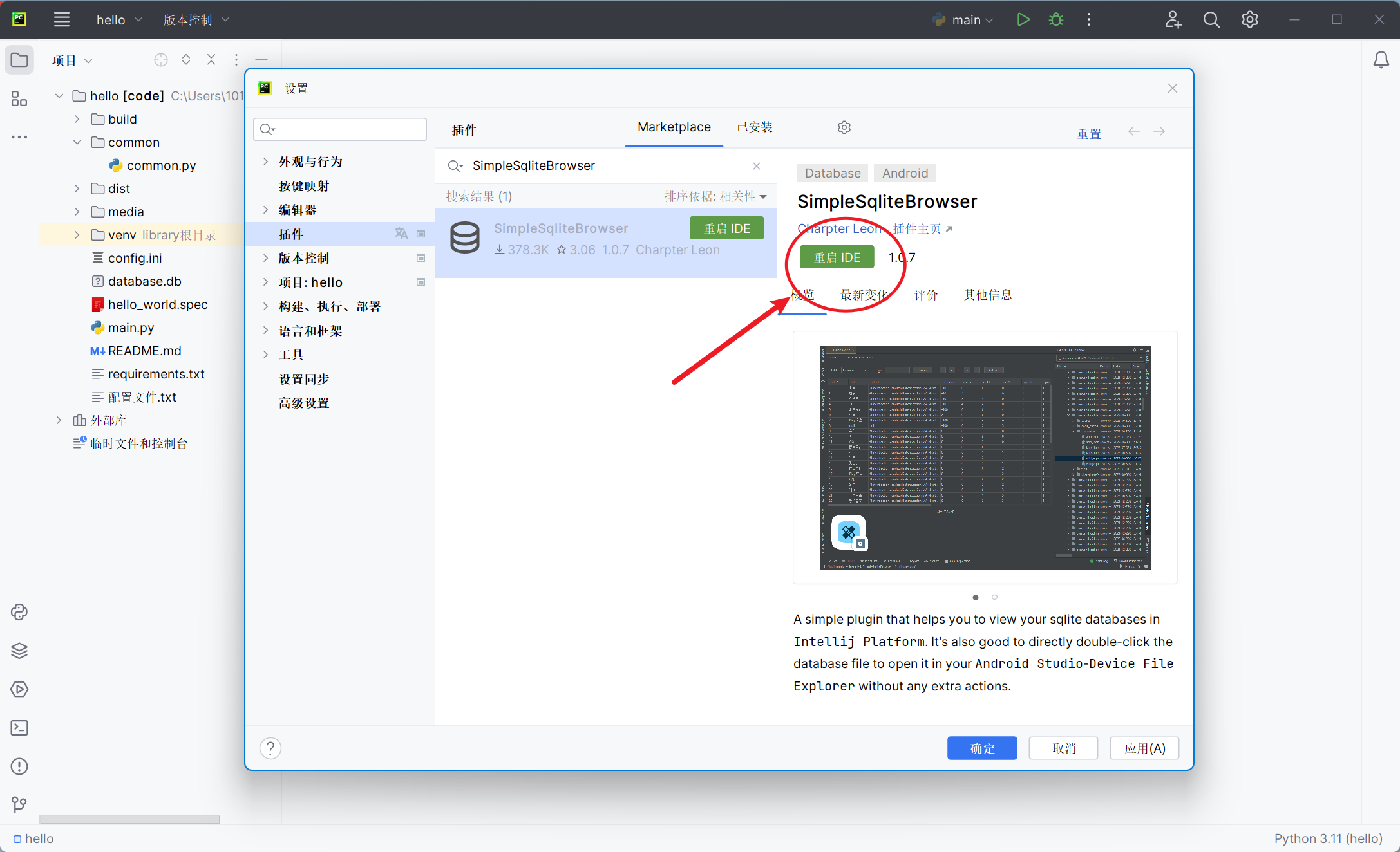 SimpleSqliteBrowser是一款轻量、免费的 SQLite 浏览器插件,完全兼容Pycharm社区版